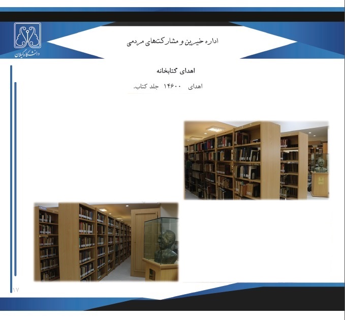 ضمن تشکر بابت همراهی و خوش اندیشی خیرین محترم با افتخار به اطلاع شما عزیزان و خانواده محترم دانشگاه گیلان می رسانیم که خیر محترم آقای دکتر محمد ابراهیم گوهریان، از مترجمان و ناشران فرهیخته و پیشکسوت گیلانی  و مدیر عامل مؤسسه مطالعات و پژوهش‌های تجارت جهانی گوهریان، در اقدامی ارزشمند و خیرخواهانه کتابخانه ارزشمند خود شامل کتابهای فارسی و انگلیسی را به کتابخانه مرکزی دانشگاه گیلان اهدا نمودند.