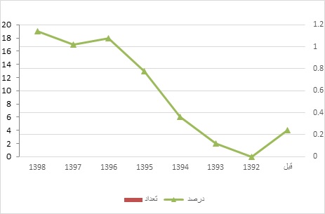 نمودار تعداد خیرین دانشگاه گیلان به تفکیک از سال 1392 تا 1398