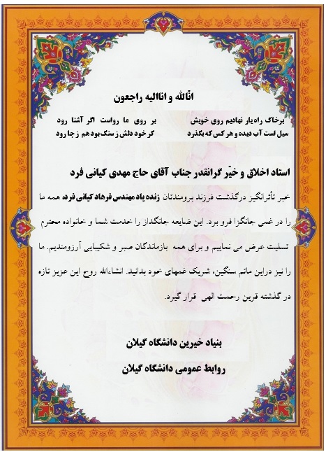 آرزوی صبر برای خانواده حاج مهدی کیانی فرد